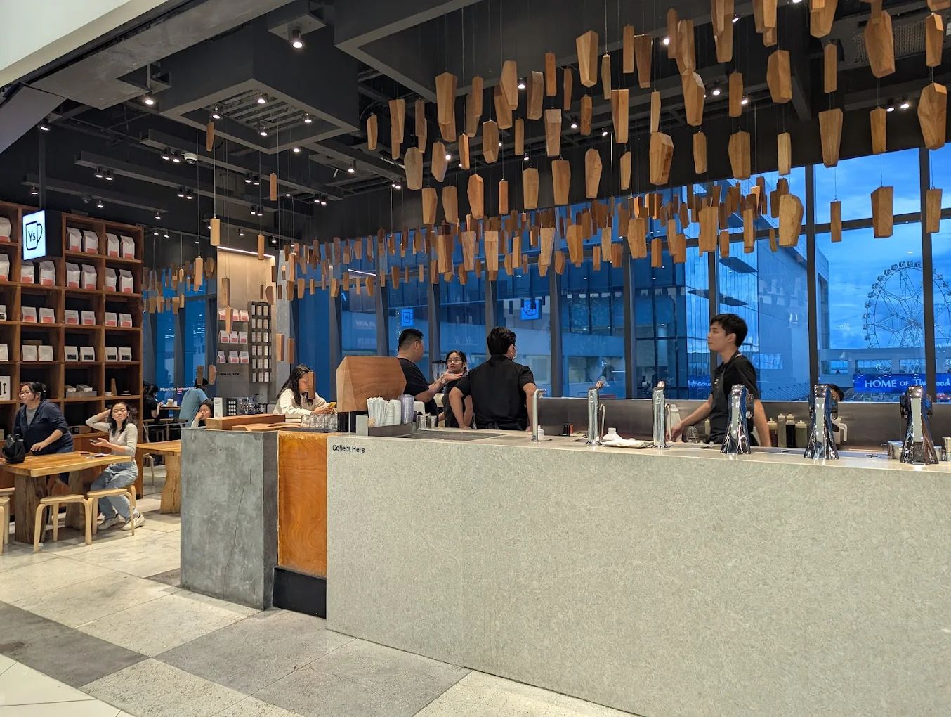 Yardstick Coffee at MOA Square features a compact 360-degree bar setup with sleek industrial aesthetics and panoramic views of Manila Bay, perfect for a quick specialty coffee fix amid mall energy. The minimalist space offers limited but functional seating with outlets available, though Wi-Fi is not guaranteed for extended work sessions.